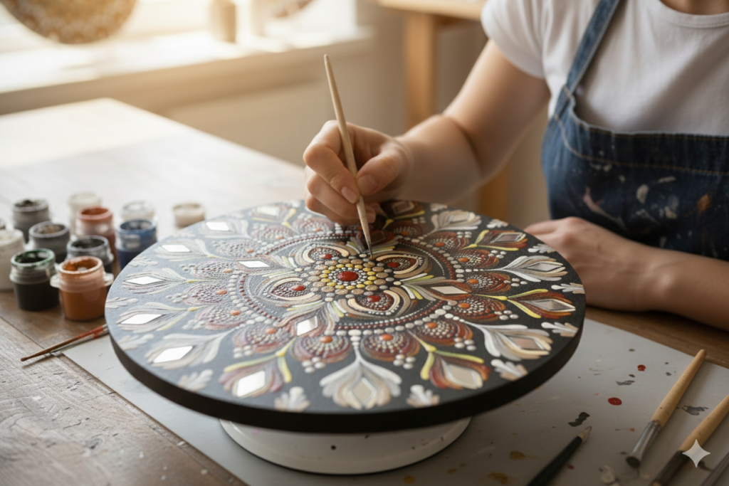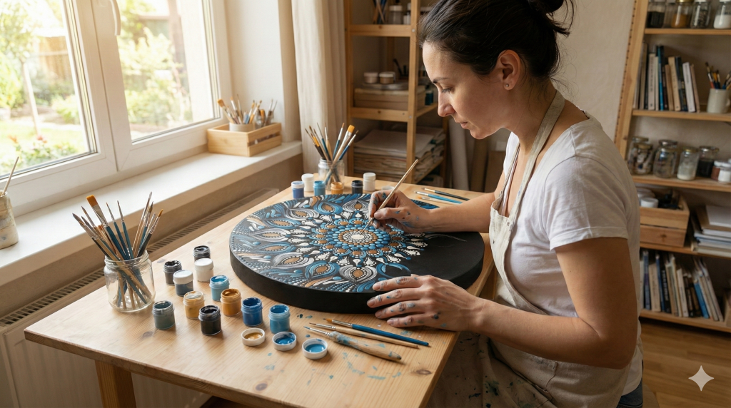 Créatrice de mandala en utilisant la technique du « dot painting », je créé des pièces uniques faites main.